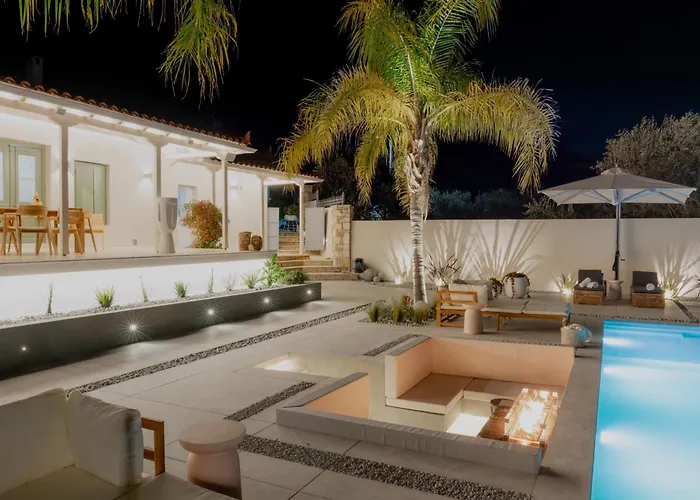 Located within 25 minutes' walk of the Arvanitia Beach, the 2-bedroom Luxury Villa With Pool, Fire Pit, Cinema In Nafplio provides access to a private swimming pool. Featuring a terrace, the Nafplio villa is situated 2.6 km from the Vouleftikon.